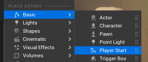 캐릭터를 만들기 위해 플레이어의 스타트 지점부터 정해주었다. 신기하다! 언리얼에는 이런 기능도 있구나.