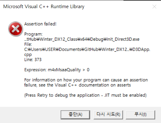 D3D12_FEATURE_DATA_MULTISAMPLE_QUALITY_LEVELS라는 이름이 긴 구조체로 지원 여부를 검사했다.