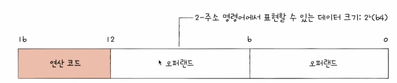 - 유효 주소를 표현할 수 있는 크기가 연산 코드만큼 감소