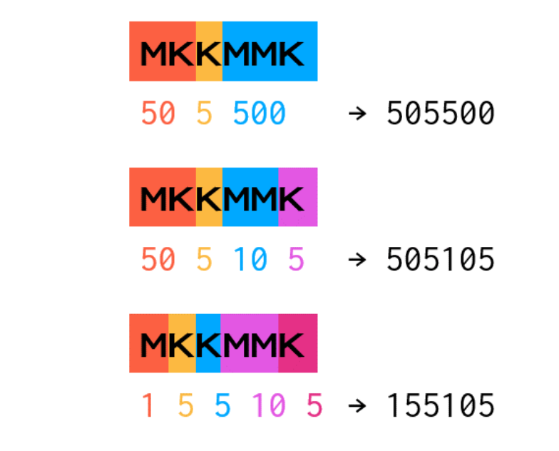 1. M은 혼자 계산하거나, M이 여러개이면 10^(M 개수) 형태로 M끼리만 계산한다.